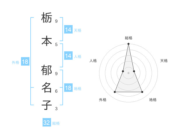 栃本 郁名子さんの総格は32画の5点!