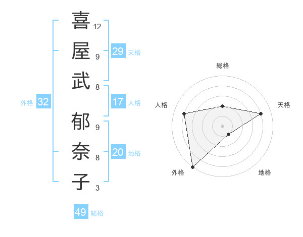 喜屋武 郁奈子さんを姓名の画数から五運を鑑定