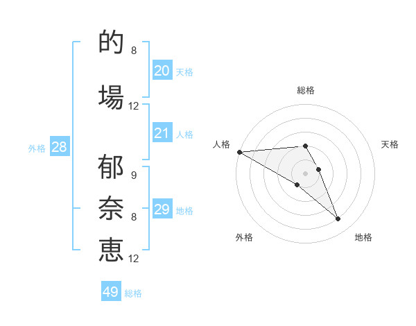 的場 郁奈恵さんの人格は21画の5点!
