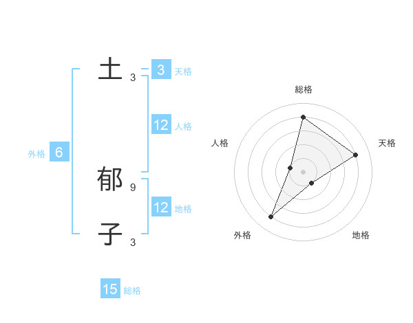 土 郁子さんの総格は15画の4点!