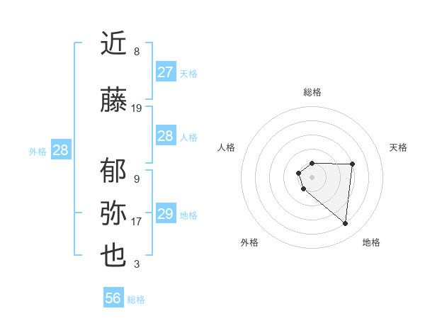 近藤 郁弥也さんを姓名の画数から五運を鑑定