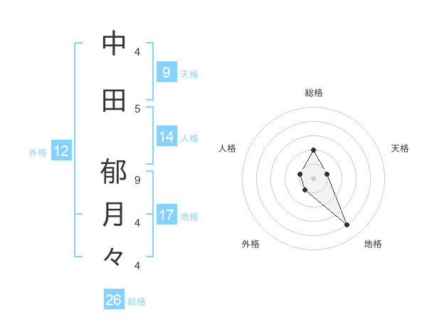 中田 郁月々さんの総格は26画の2点