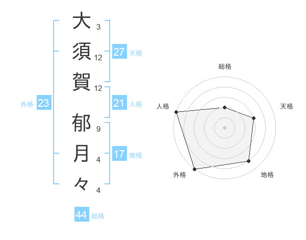 大須賀 郁月々さんの総格は44画の2点!