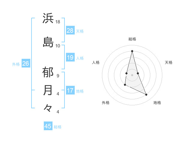 浜島 郁月々さんの総格は45画の4点