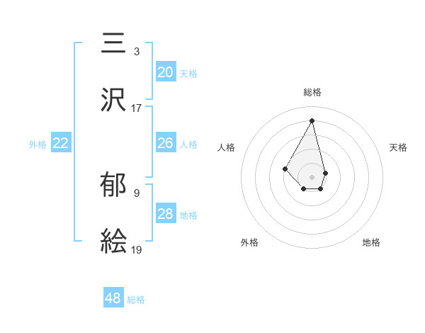 三沢 郁絵さんを姓名の画数から五運を鑑定