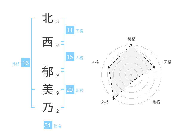 北西 郁美乃さんを姓名の画数から五運を鑑定