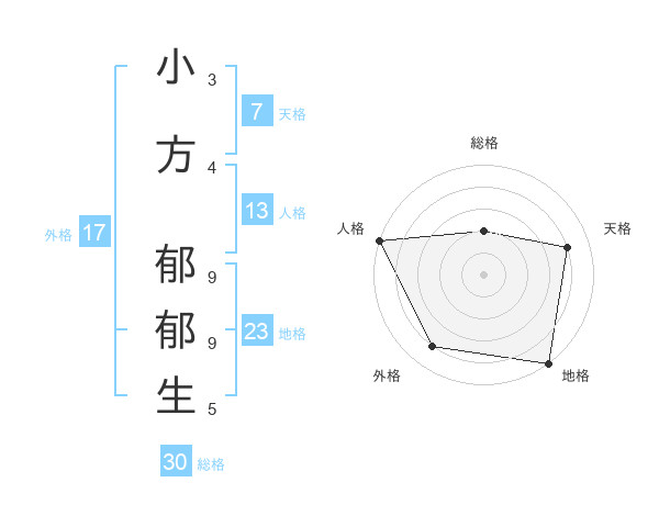 小方 郁郁生さんを姓名の画数から五運を鑑定