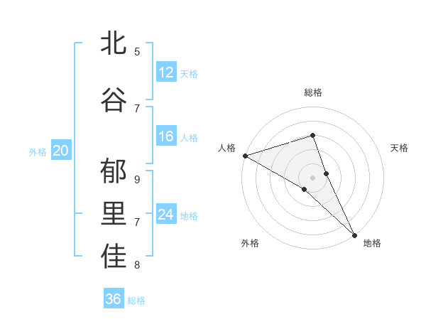 北谷 郁里佳さんの天格は12画の1点!
