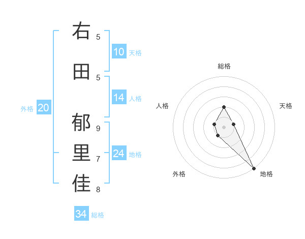 右田 郁里佳さんを姓名の画数から五運を鑑定