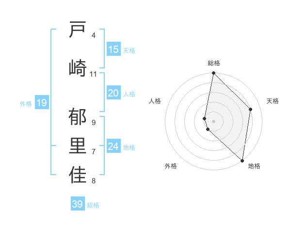 戸崎 郁里佳さんの天格は15画の4点!