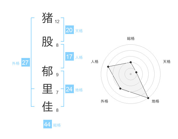 猪股 郁里佳さんの地格は24画の5点!