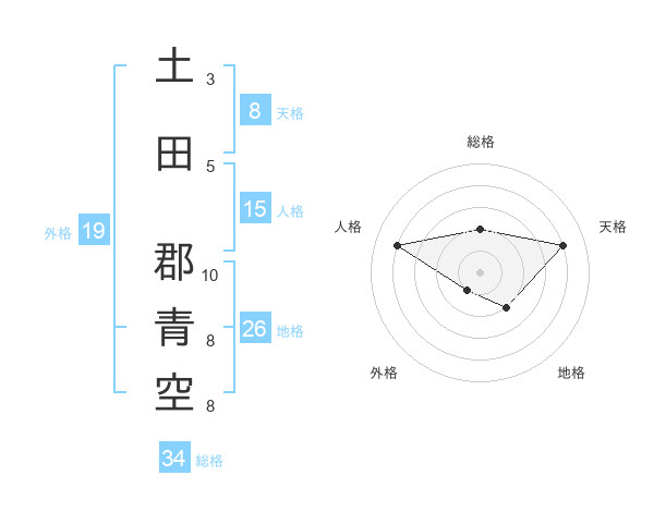 土田 郡青空さんを姓名の画数から五運を鑑定