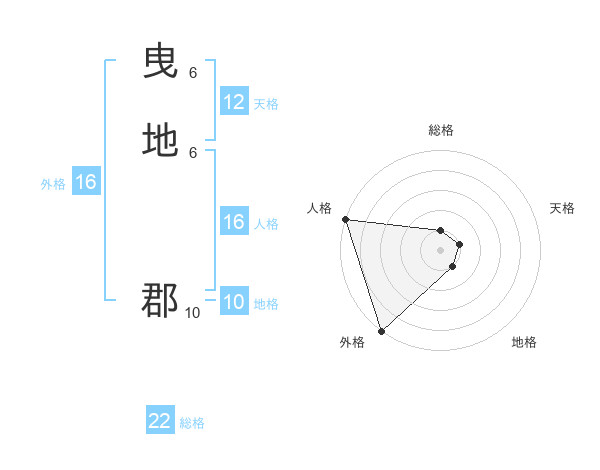 曳地 郡さんを姓名の画数から五運を鑑定