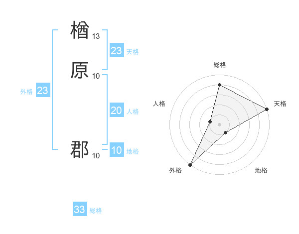 楢原 郡さんの総格は33画の4点!