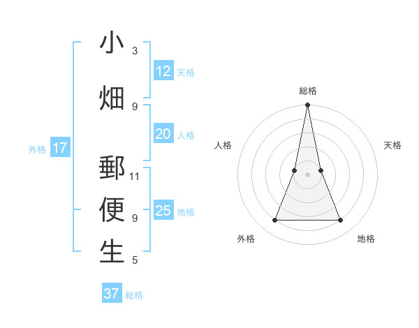 小畑 郵便生さんの総格は37画の5点!