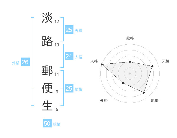 淡路 郵便生さんの総格は50画の2点!