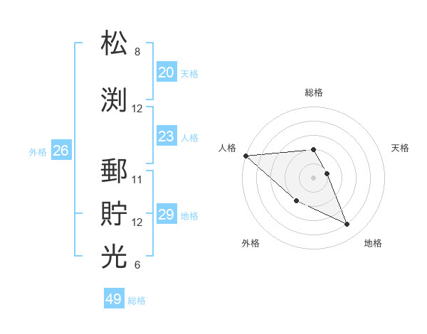 松渕 郵貯光さんの総格は49画の2点!