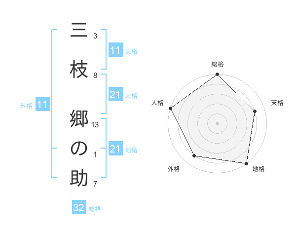 三枝 郷の助さんを姓名の画数から五運を鑑定