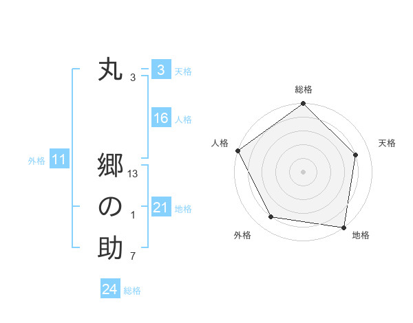 丸 郷の助さんを姓名の画数から五運を鑑定