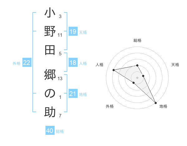 小野田 郷の助さんを姓名の画数から五運を鑑定