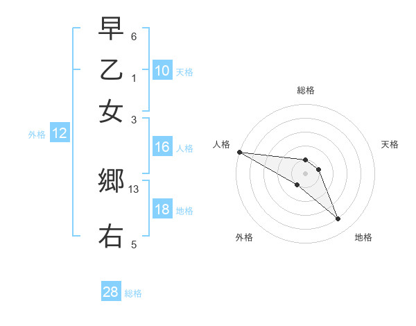 早乙女 郷右さんを姓名の画数から五運を鑑定