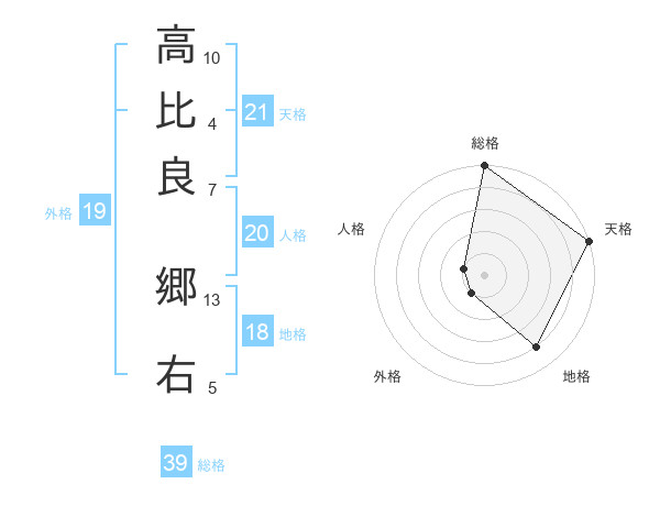 高比良 郷右さんを姓名の画数から五運を鑑定