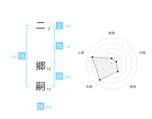 二 郷嗣さんの外格は15画の4点!