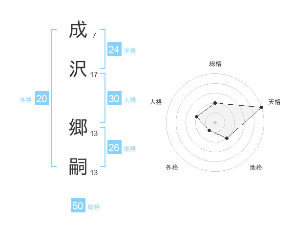 成沢 郷嗣さんの総格は50画の2点!
