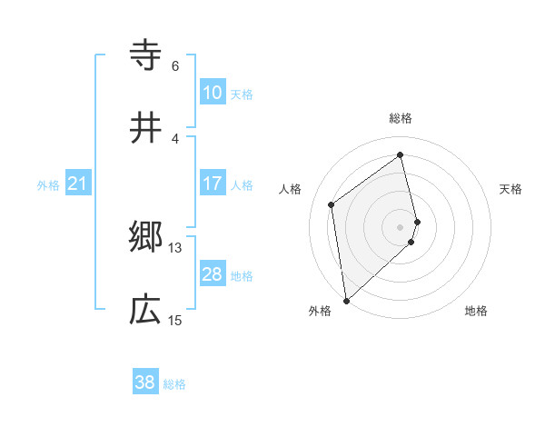 寺井 郷広さんの総格は38画の4点!