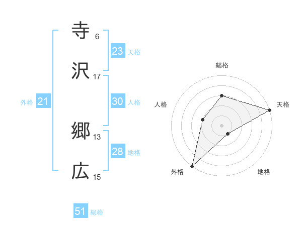 寺沢 郷広さんを姓名の画数から五運を鑑定