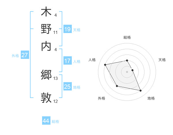 木野内 郷敦さんを姓名の画数から五運を鑑定