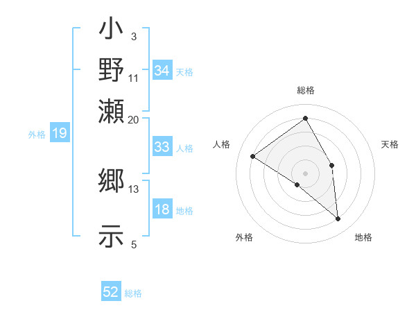 小野瀬 郷示さんを姓名の画数から五運を鑑定