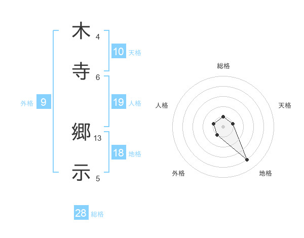 木寺 郷示さんの総格は28画の1点!