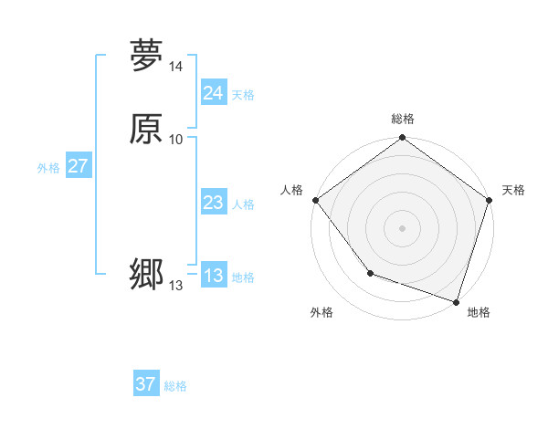 夢原 郷さんの総格は37画の5点!