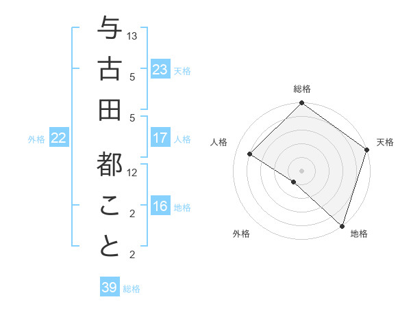 与古田 都ことさんを姓名の画数から五運を鑑定