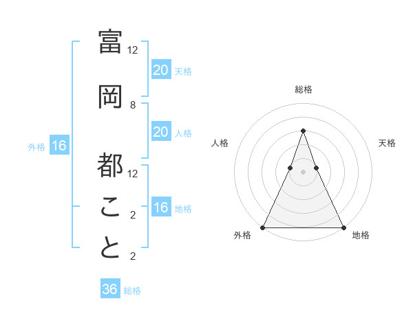 富岡 都ことさんを姓名の画数から五運を鑑定