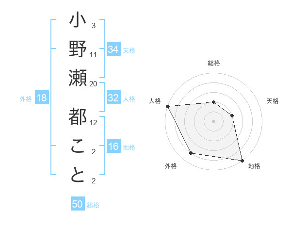 小野瀬 都ことさんを姓名の画数から五運を鑑定