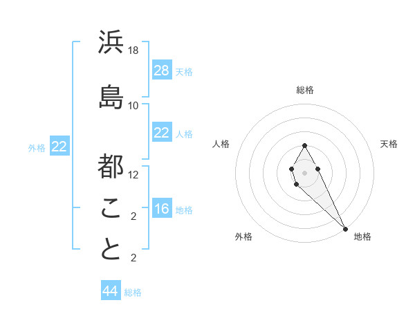 浜島 都ことさんを姓名の画数から五運を鑑定