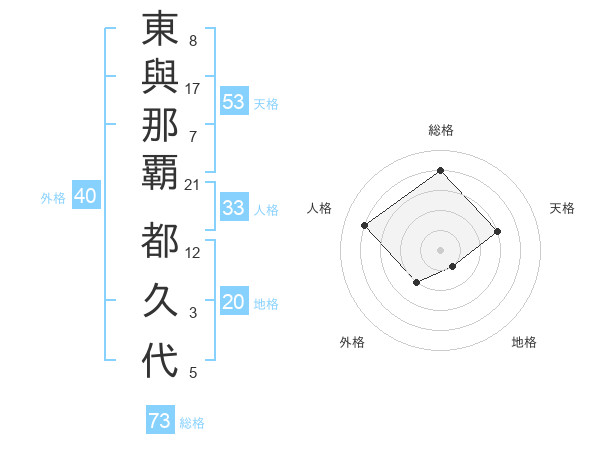 東與那覇 都久代さんの総格は73画の4点!