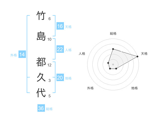 竹島 都久代さんの天格は16画の5点!