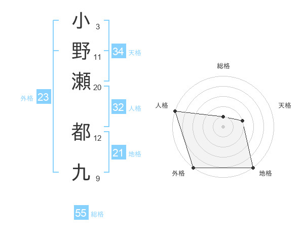 小野瀬 都九さんを姓名の画数から五運を鑑定
