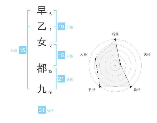 早乙女 都九さんを姓名の画数から五運を鑑定