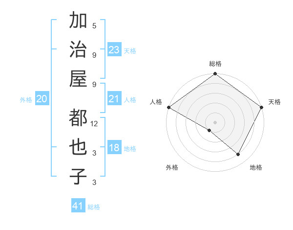 加治屋 都也子さんの天格は23画の5点!