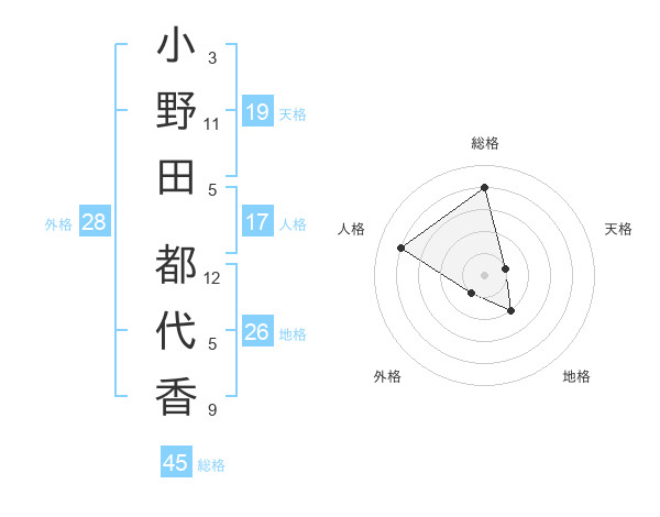小野田 都代香さんを姓名の画数から五運を鑑定