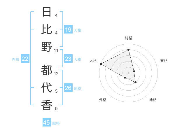 日比野 都代香さんの総格は45画の4点!