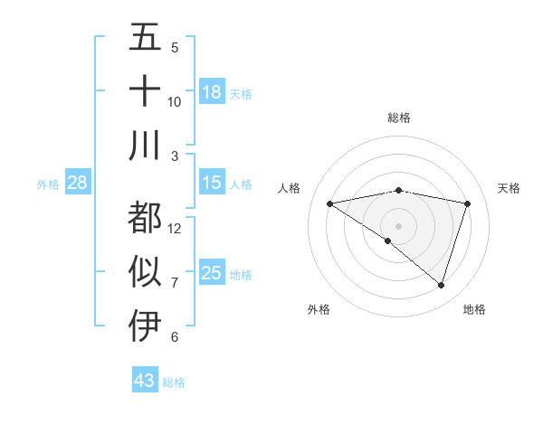 五十川 都似伊さんを姓名の画数から五運を鑑定