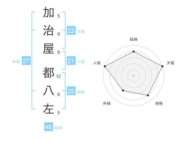 加治屋 都八左さんを姓名の画数から五運を鑑定