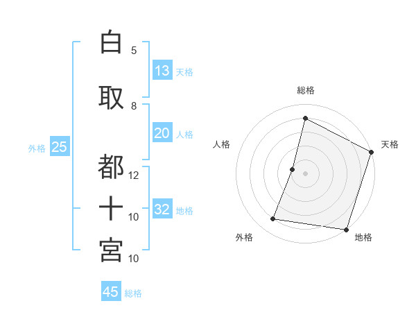 白取 都十宮さんの総格は45画の4点!