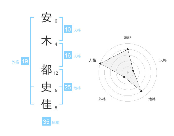 安木 都史佳さんの総格は35画の4点!