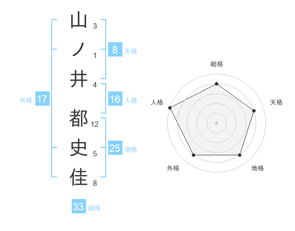 山ノ井 都史佳さんの天格は8画の4点!